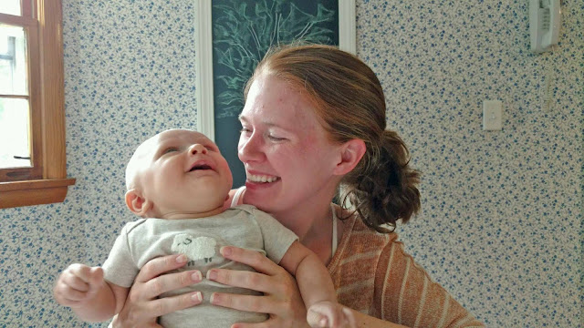 Every morning Coops wakes up happily chatting & we plop him right onto one of our laps to have morning conversations. We talk to him in his coos & giggles, mimic his facial expressions & use words to keep the talks going. It's definitely a favorite part of the day for all 3 of us & something I've grown to treasure.